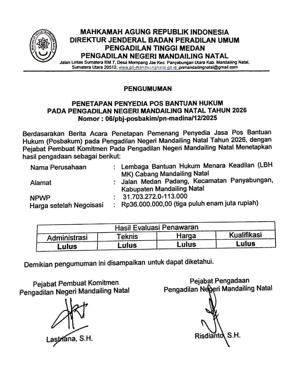 Pengumuman Mahkamah Agung