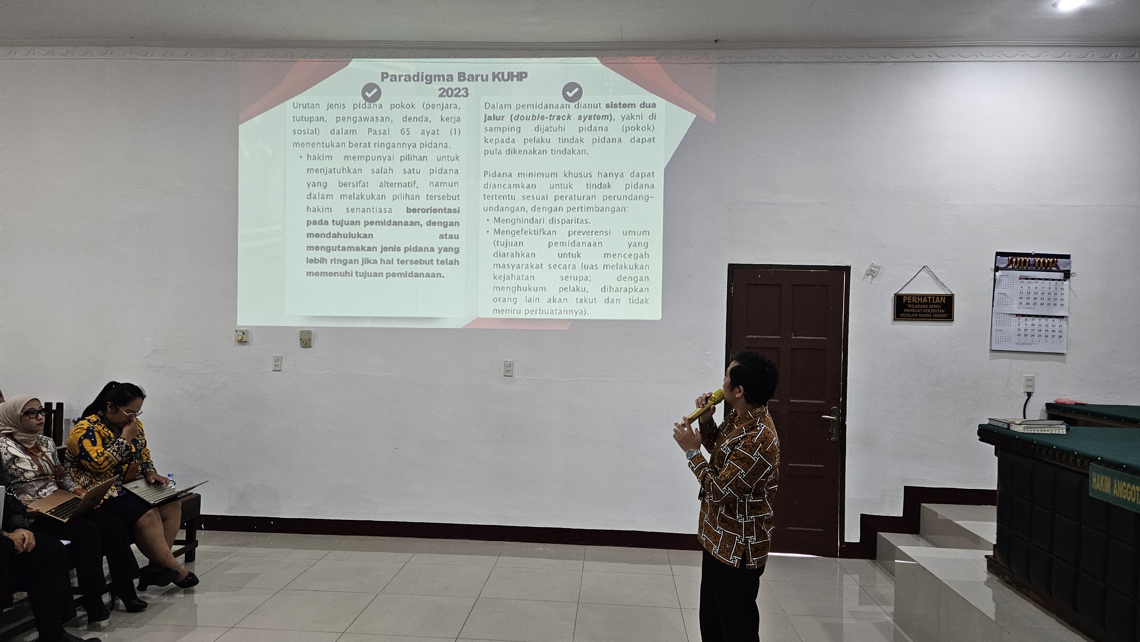 Panyabungan (29/01/2026). Pengadilan Negeri Mandailing Natal melaksanakan Kegiatan Sosialisasi/Internalisasi KUHP Nasional di Ruang Sidang Garuda PN Mandaliling Natal. Sebagai Narasumber pada acara Sosialisasi/Internalisasi ini adalah Bapak. Iwan Lamganda, S.H (Hakim PN Mandailing Natal) Acara Sosialisasi ini di ikuti oleh Ketua, Wakil Ketua, para Hakim, Panitera, Sekretaris, Pejabat Struktural/Fungsional dan Pegawai PN Mandailing Natal